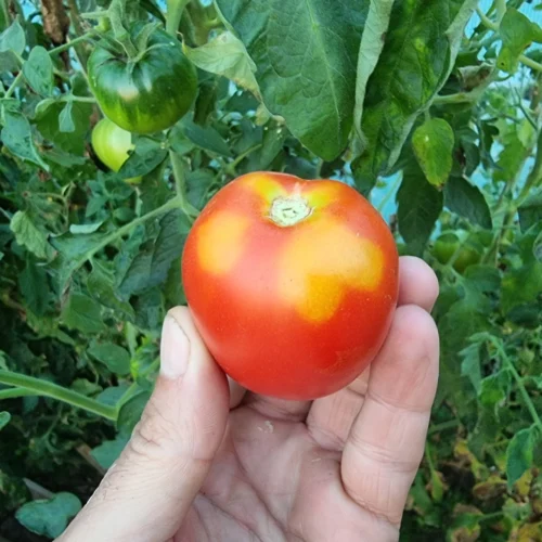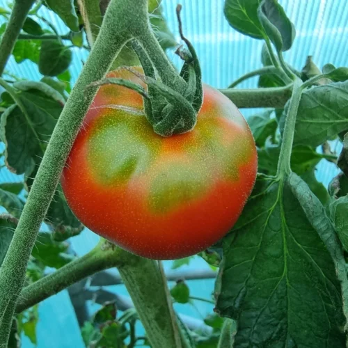 W uprawie pomidora w gruncie, pod osłonami czy na balkonach i tarasach można spotkać się ze zjawiskiem, że część owoców pomidora dojrzewa bardzo nierównomiernie. Część ogrodników szczególnie niepokoi takie zjawisko, że owoc jest już w większości przypadków całkowicie wybarwiony i niemal w pełnej dojrzałości, a na jego części np. w okolicach szypułki, z boku owocu pojawiają się zielone lub zielonożółte plamy, które nie chcą dojrzeć. Część tych miejsc jest dodatkowo twarda. Mało tego, są sytuacje, że takie owoce są przejrzałe, same spadają z rośliny a dalej na skórce są miejsca w których pozostaje zielony lub zielonożółty kolor. Niestety odpowiedź co się dzieje nie jest taka oczywista, bo przyczyn może być wiele.