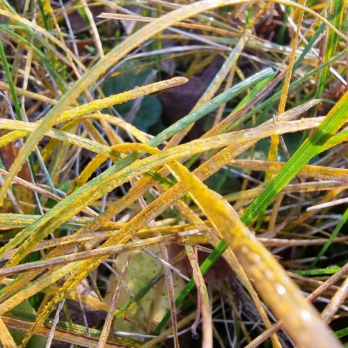 W ostatnich kilku latach do DIONP dociera coraz więcej zapytań co się dzieje z trawnikami, że zaczynają żółknąć. To żółknięcie nie polega jednak tylko na żółknięciu blaszki liściowej na skutek spadku zawartości chlorofilu, ale ogrodnicy zauważają, że liście dodatkowo są pokryte żółtym nalotem grzyba. Mało tego, dotknięcie trawy ręką albo przejście po niej powodują, że osadza się na dłoniach i butach żółtawy pył.