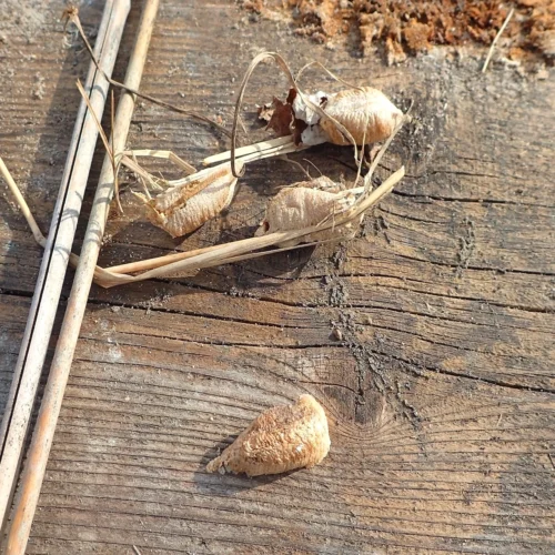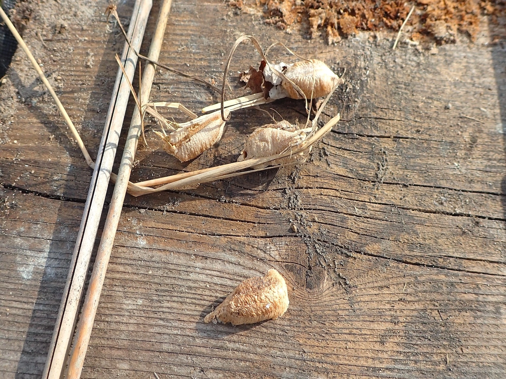Jaja - ukryte są w kokonie – tzw. ootece. Początkowo kokon ma postać piany, która stopniowo zastyga oraz ciemnieje i ostatecznie przyjmuje barwę jasnobrązową. Mocowany jest zwykle do łodyg różnych gatunków roślin. Wewnątrz kokonu znajduje się do 100 jaj. Niezależnie od tego, czy dojdzie do zapłodnienia czy też nie, samica składa jaja w kokonie. W wypadku braku zapłodnienia nie dochodzi do wylęgu larw.
