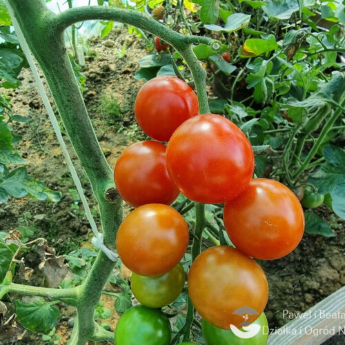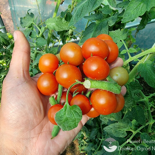 Pomidor odmiany Malinowy Smaczek – koktajlowy, wysoki, malinowe owoce