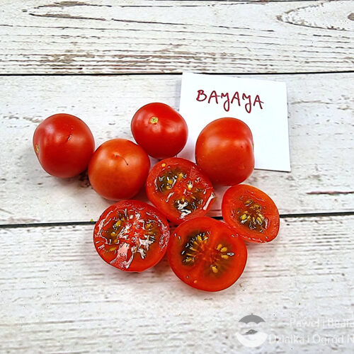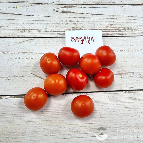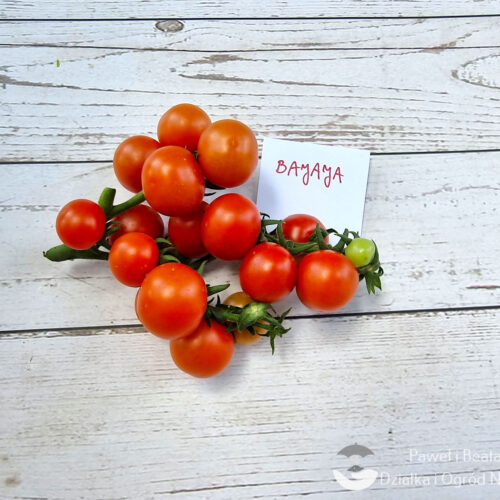 Bajaja to wczesna odmiana pomidora karłowego o owocach typu cherry. Najlepiej sprawdzi się uprawiany przede wszystkim w pojemnikach wiszących lub stojących z uwagi na zwieszające się, sztywne pędy. Rośliny są niskie, silnie krzewią się, osiągają ok. 40-50 cm wysokości. Owoce są kuliste, małe, o średnicy ok. 1,5-3 cm i masie ok. 8-12 g, gęsto oblepiają krzew. Skórka jest czerwona, błyszcząca, gruba i mocna, dzięki temu owoce nie mają tendencji do pękania. Miąższ jest czerwony, soczysty, kwaskowaty, niezbyt słodki. Z uwagi na mało wyrazisty smak, owoce tej odmiany najlepiej sprawdzą się jako dodatek do dań pieczonych i duszonych lub do dekorowania potraw.