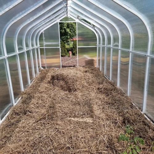 Słoma różnych zbóż to jeden z najpopularniejszych sposobów ściółkowania roślin w tych ogrodach, które mają do niej dostęp. Kto ma zaprzyjaźnionego rolnika ten ma zwykle dostęp do tego cennego surowca, bo w innym przypadku trzeba pokombinować, gdzie ją kupić. Na różnych portalach sprzedażowych można jednak zamówić sobie np. balot słomy zbożowej i kurier go dowiezie. Nie ma większego znaczenia z jakiej rośliny zbożowej pochodzi słoma. Trzeba mieć tylko na uwadze, że może być ona mniej lub bardziej pocięta. Czasami ogrodnik sam musi ją dociąć na mniejsze kawałki co ułatwia ściółkowanie, ale z drugiej strony im drobniejsze kawałki tym wiatr łatwiej może je potem rozwiać. W uprawie DIONP stosujemy ściółkę ze słomy z rodzinnego gospodarstwa rolnego, które nam pomaga w naszej działalności - tak ściółkujemy w szklarni - film TUTAJ.